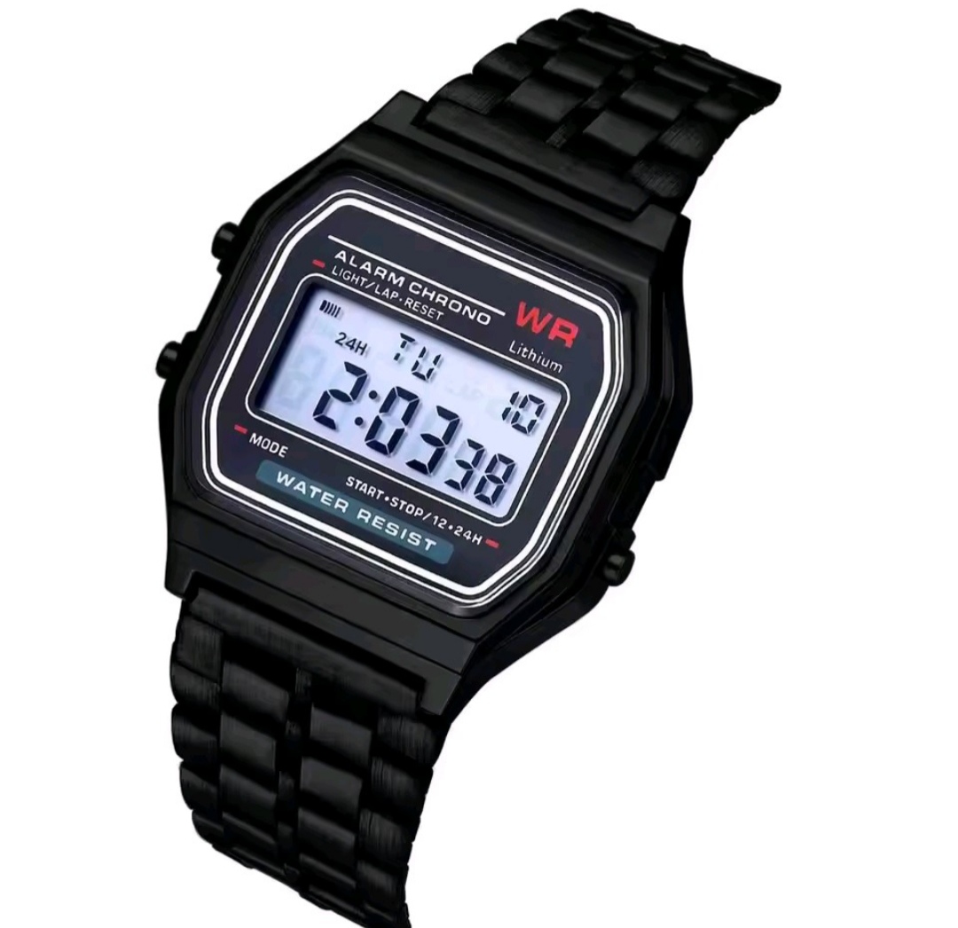 -Reloj digital con diseño moderno y acabado en negro.