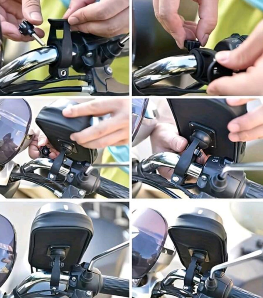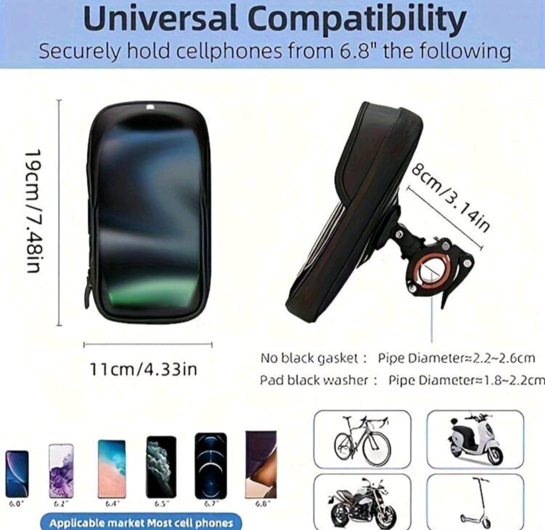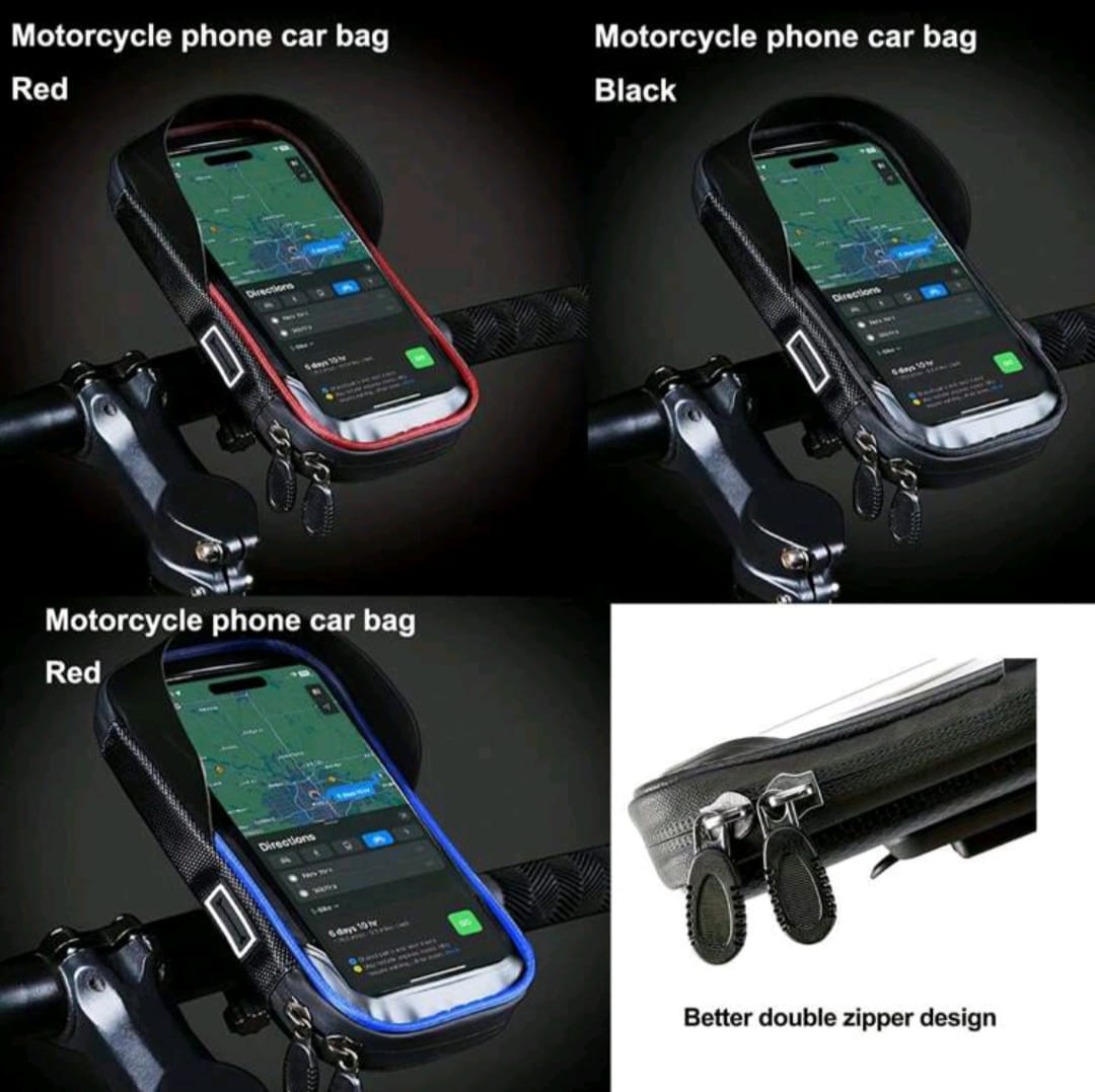 Adecuado Bicicleta/Motocicleta, bolsa de teléfono diaria con cremallera doble, se adapta a teléfono de 4-5-6-4 pulgadas, negro accesorio de ciclismo al aire libre